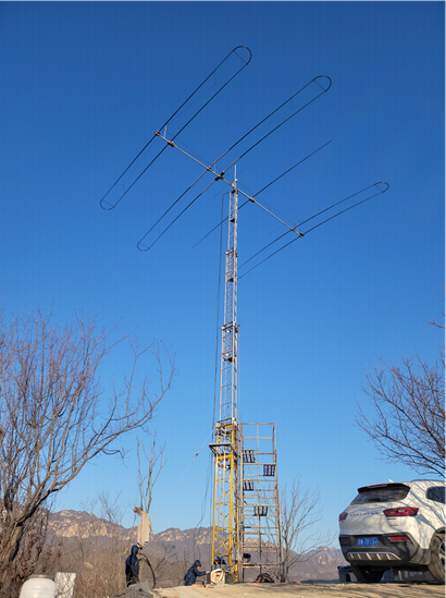 該系統采用了國內第一套伺服控制四節可升降三角形鋼制天線塔,起升總高度19米,回落高度7米,可通過調節不同天線高度實現多種發射仰角,以滿足不同距離的通信需求,并能有效避免山區風大雷多等不利因素;天線采用了多波段高增益連續可調式八木天線,結構合理調諧方便,可以實現全波段較高增益,結合當地較低的電磁噪聲環境,可開展遠距離短波通信實驗。